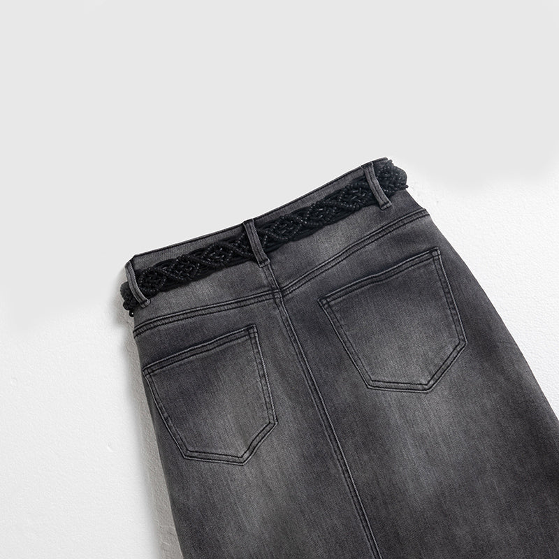【 AHNGO】 Spring and summer new heavy industry embroidery flower hot stamping design, slim fit and versatile women's half body skirt 8920